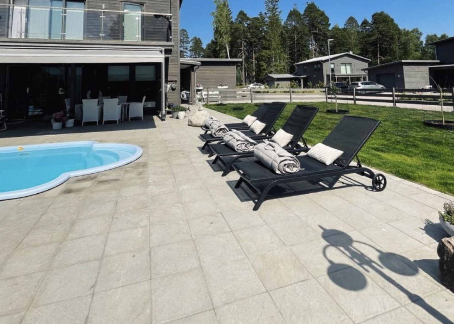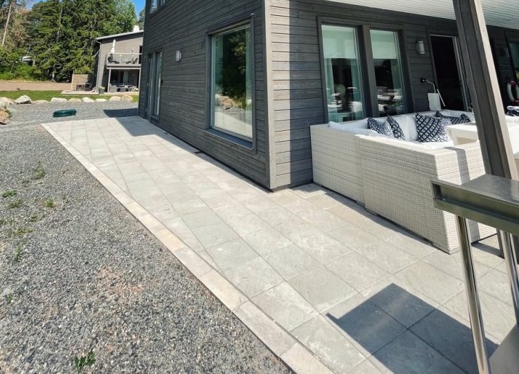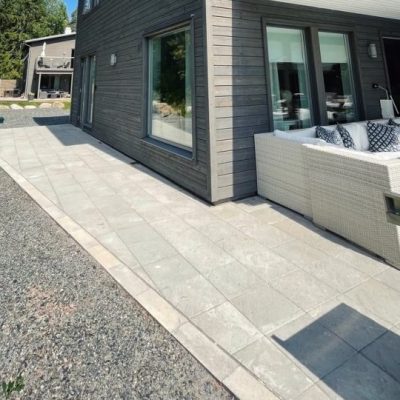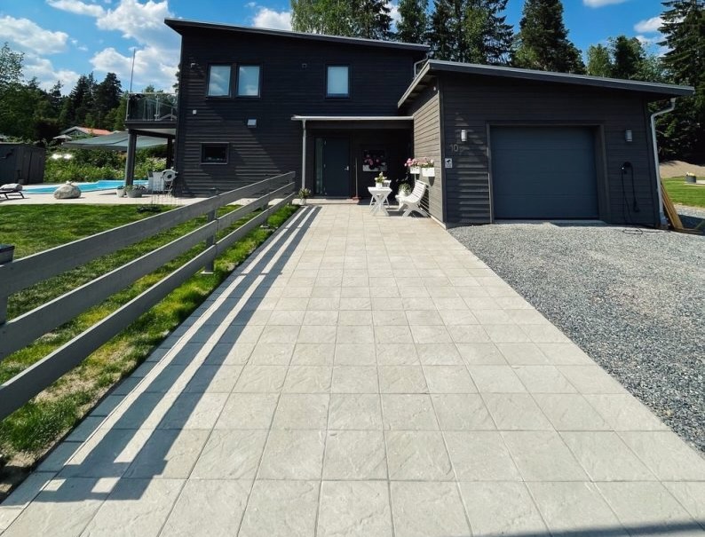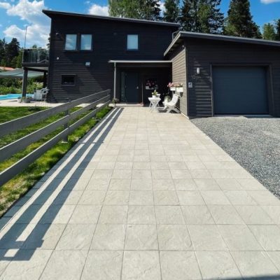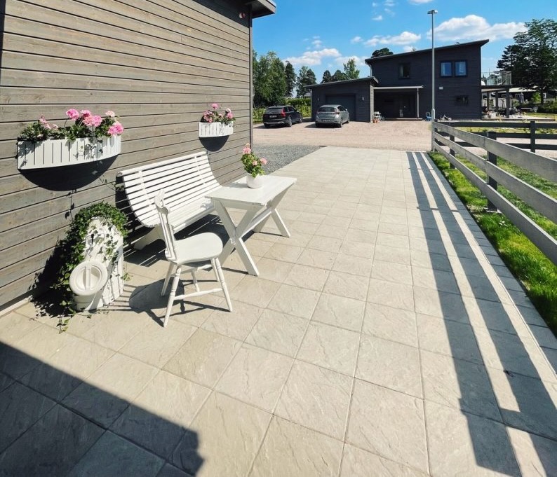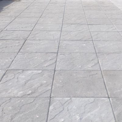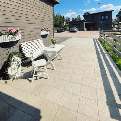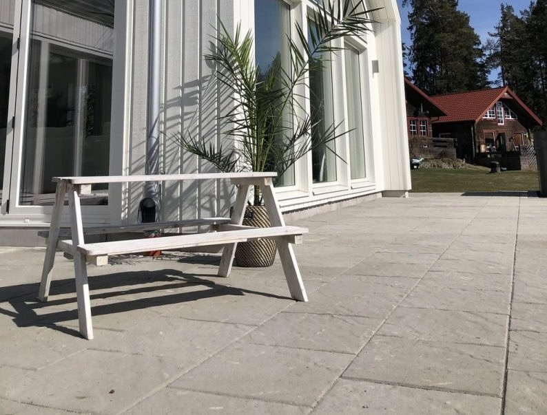Sandskär stenplatta i färgen grå. Den strukturerade ytan skapar variation och passar bra till uteplatser och gångar.